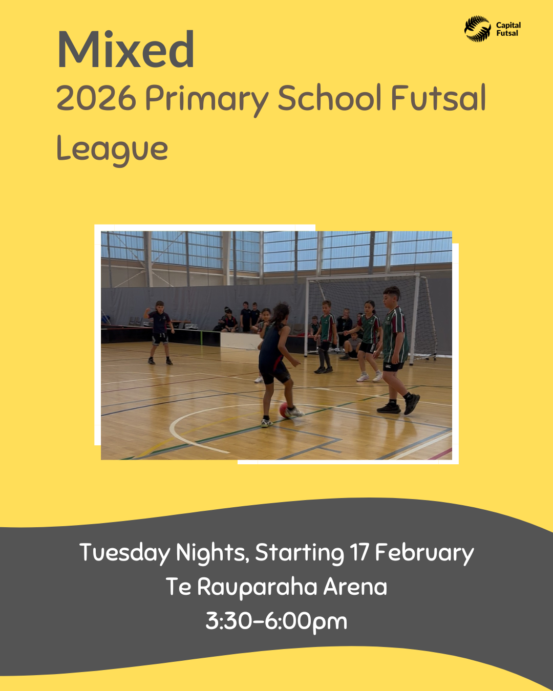 In Terms 1 and 4 we organise the Primary School Futsal League atWalter Nash Centre on Mondays.
