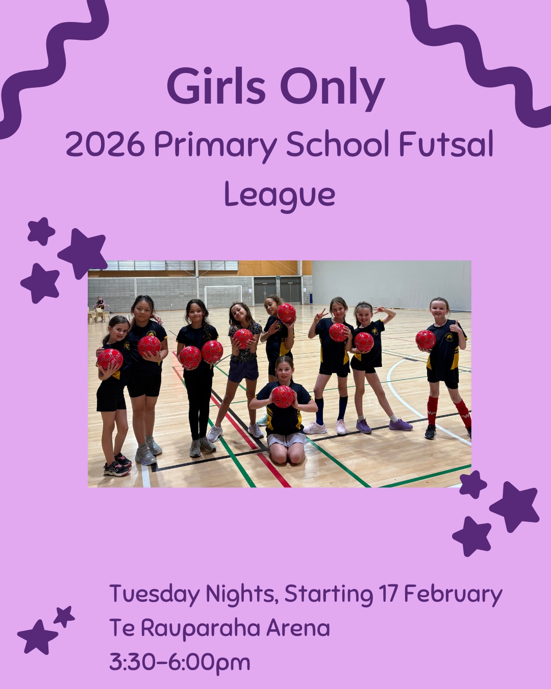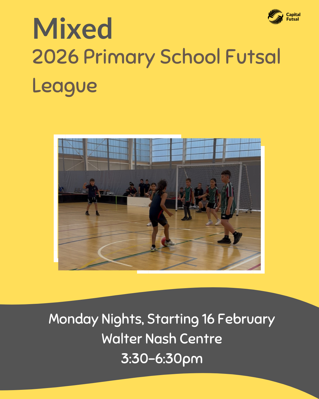 In Terms 1 and 4 we organise the Primary School Futsal League atWalter Nash Centre on Mondays.