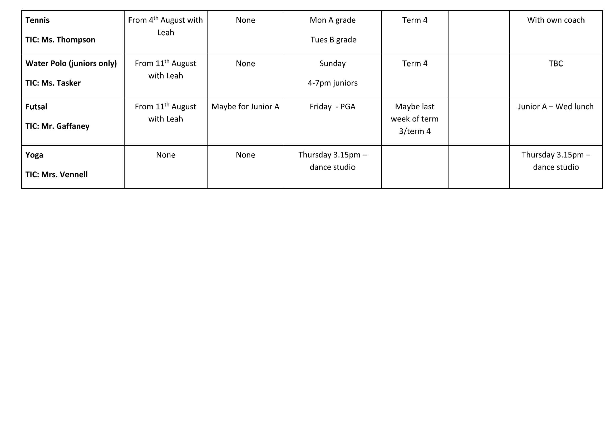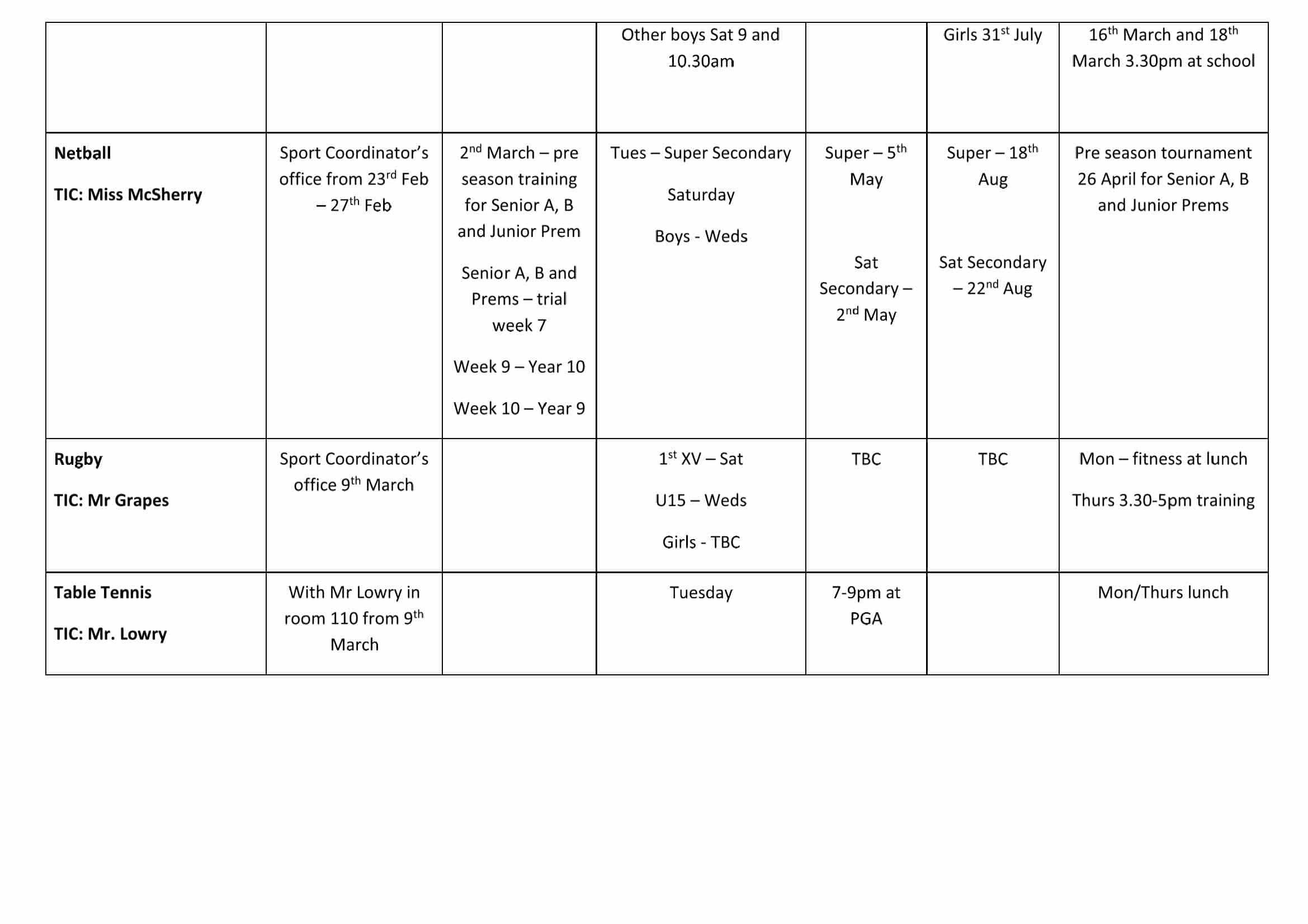 • Summer Sports Draws
