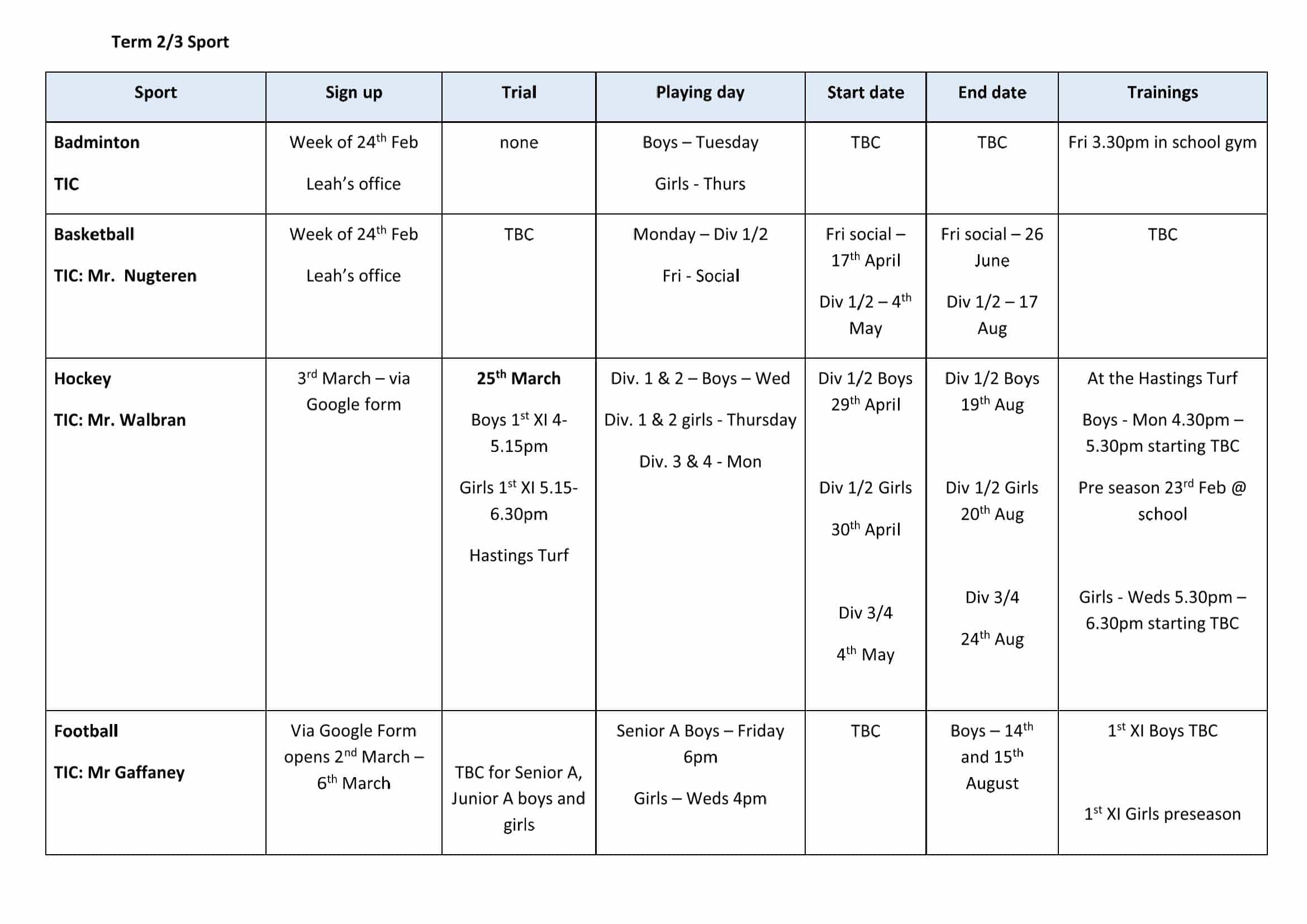 • Sports Calendar