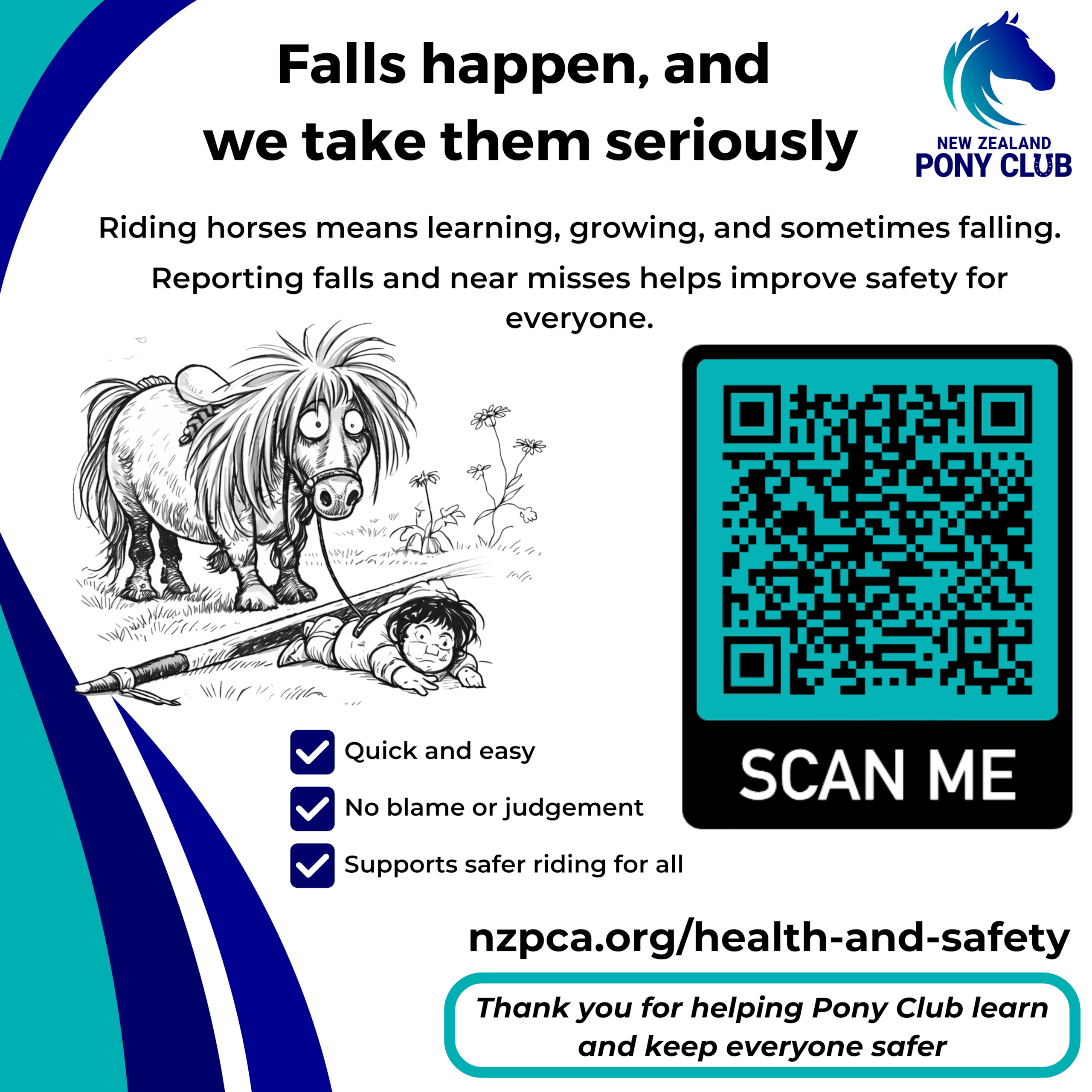 At the New Zealand Pony Clubs Association (NZPCA), we are committed to providing a safe and healthy environment for all our members, volunteers, contractors, and visitors. Our Health and Safety Management Plan (HSMP) outlines this commitment across all Pony Club activities, events, and locations under NZPCA’s control.
