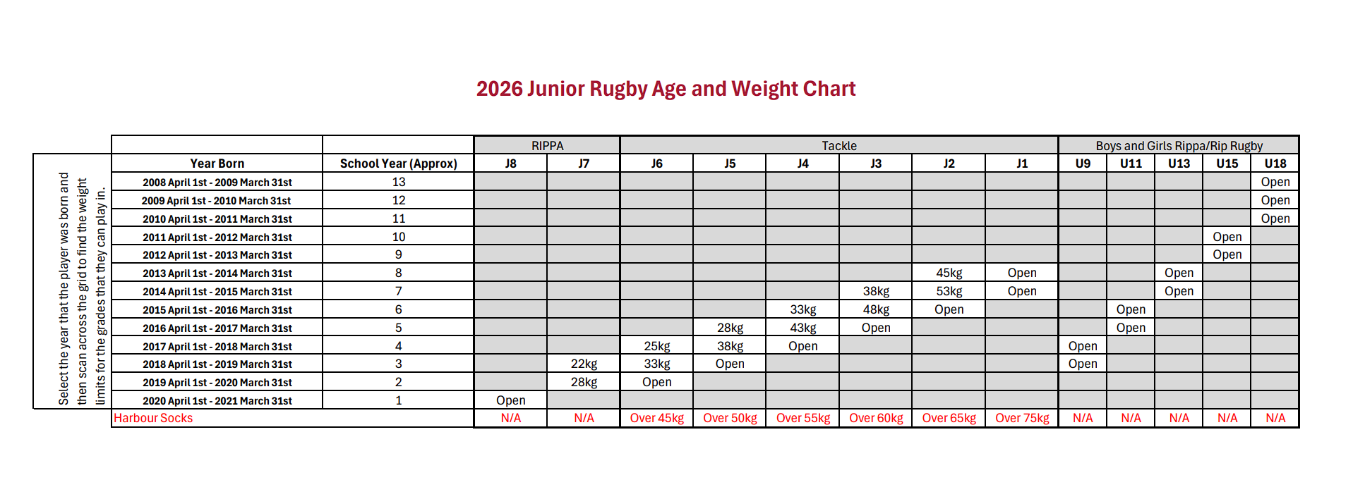 *Please note if payment has not been received or discussed with the Director of Junior Rugby and/or Club Manager your child will not be entered into a team.