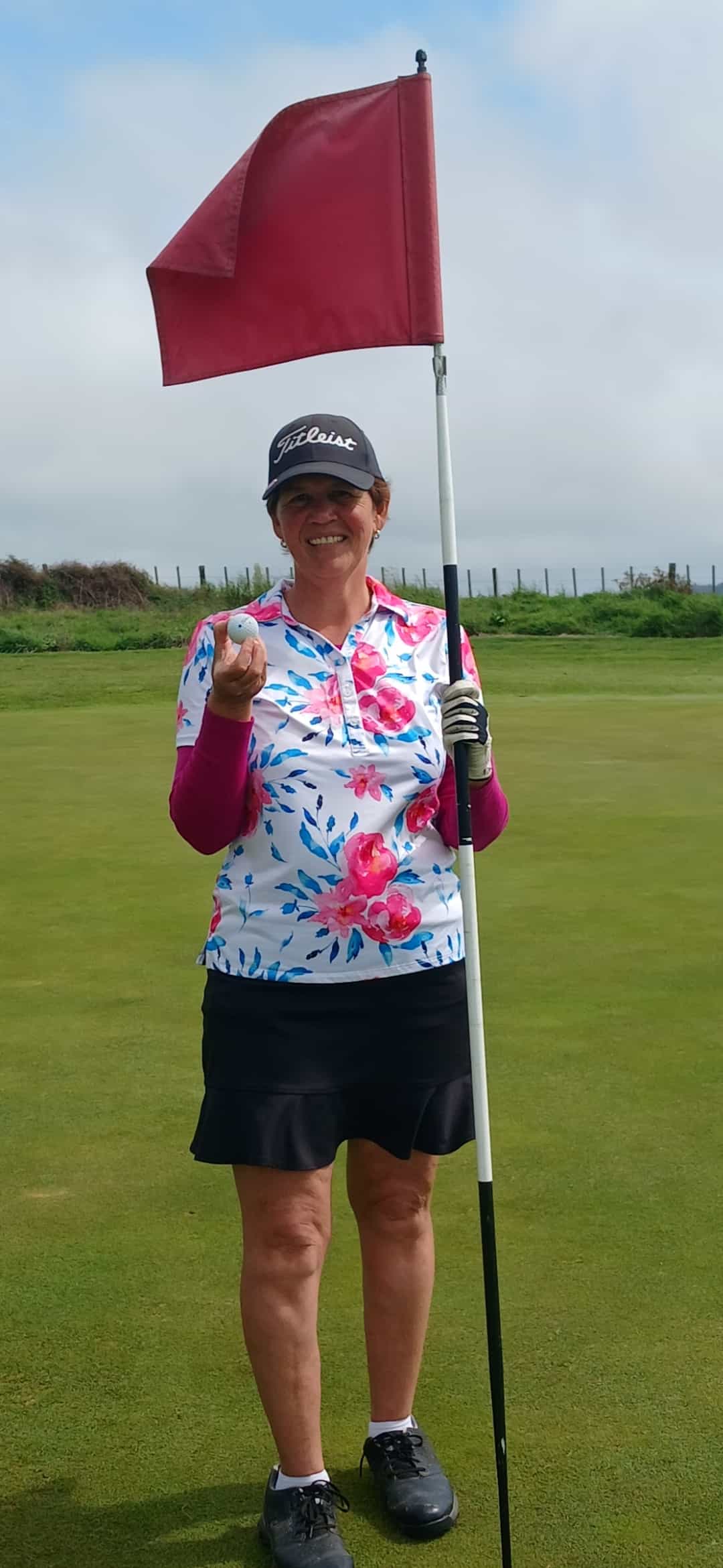 Celeste Sattler Does it Again! Another hole in one playing at the Waitomo ITM 2-Day event on Saturday, 11th October, 2025. Windy, drizzly and takes a 5-wood on the 17th Hole. Celeste realized, she's wearing the same shirt from her last Hole in One. Must be a very lucky shirt!