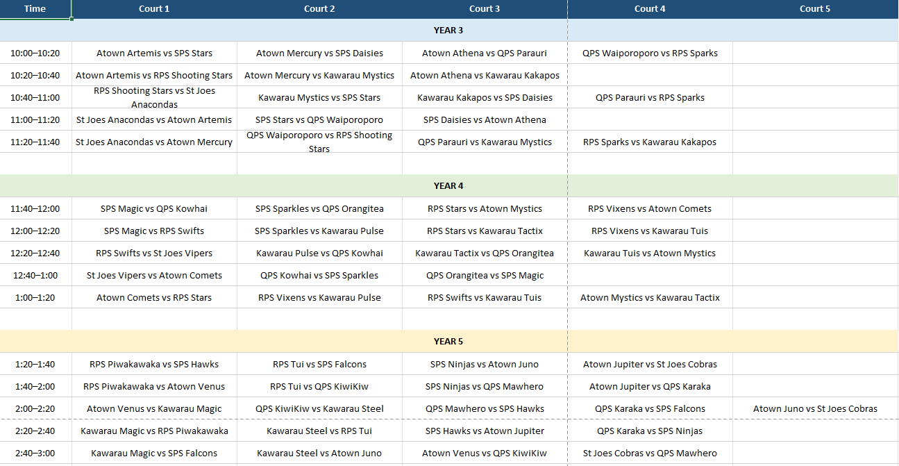 Year 3 - 5 Teams get 3 short games of 2 x 7 minutes. All games to Start on the hooter
